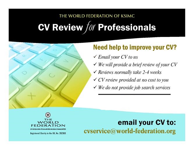 To avail of this service, please forward an email with detailed queries and attach your CV if applicable to cvservice@world-federation.org . Br Tanveer will strive to respond to your email within three to five weeks.