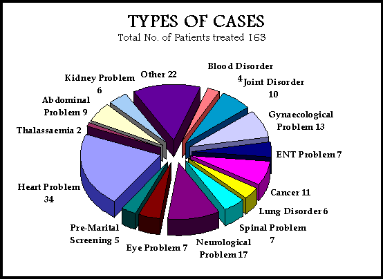 The following is a breakdown summary of patients treated/advised by Medical Advisory Board of the World Federation of K.S.I.M.C.