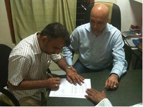 Sayyid Ali Naqvi (ASG WF-Islamic Education) and Jaffer bhai Charania (JPC) signing the agreement