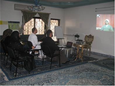 Students being lectured by Dr Bahmanpour on Authority in Shia Islam from London via video-conferencing