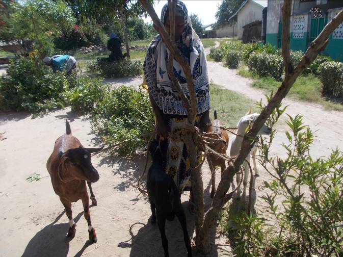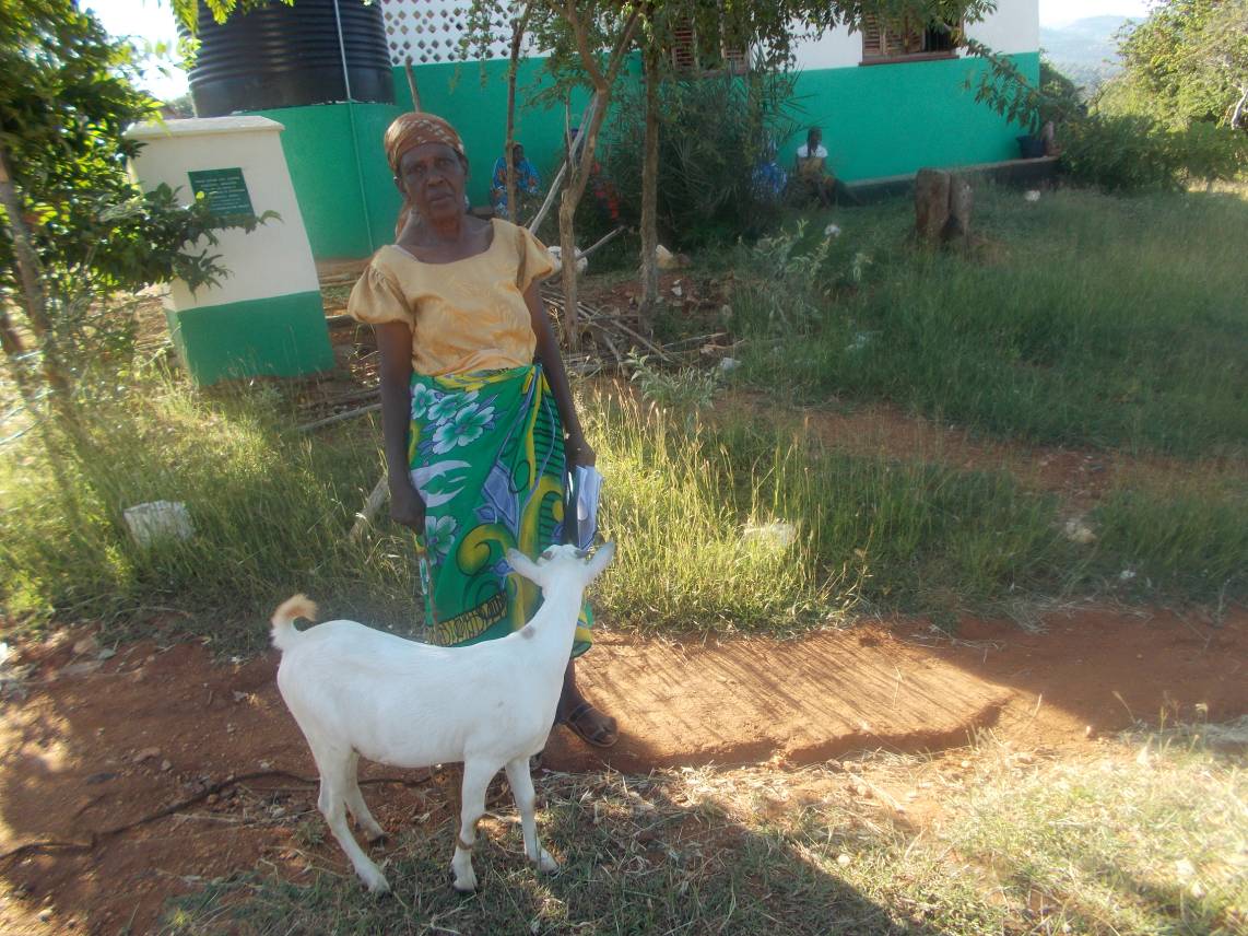 Anzazi is married and has seven children, all of whom are married and working in Mombasa. Her husband is a farmer and Anzazi herself, owns a number of different businesses, such as selling mats and selling local eggs. She also has one goat that she received as part of the live goats scheme. Since being given the goat, it has given birth to a female kid. Azazi thanked the team as she now gets milk from her goats.