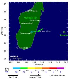 On 10 March 2010, tropical Cyclone Hubert struck the south-east coast of Madagascar between Tamatave and Mananjary, about 700 kilometres south east of the capital Antananarivo. Towns and villages were cut off by flooding and landslides caused by heavy rains. Moreover, disruption to communication networks has complicated relief efforts. Hubert was the first cyclone to cause serious damage on the island in the current cyclone season, which began in November and ended in April.