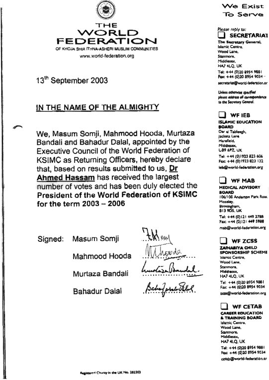 The World Federation enables its member institutions to promote the values and practices of the Islamic Shia Ithna Asheri Faith for the spiritual and material well being of humanity at large