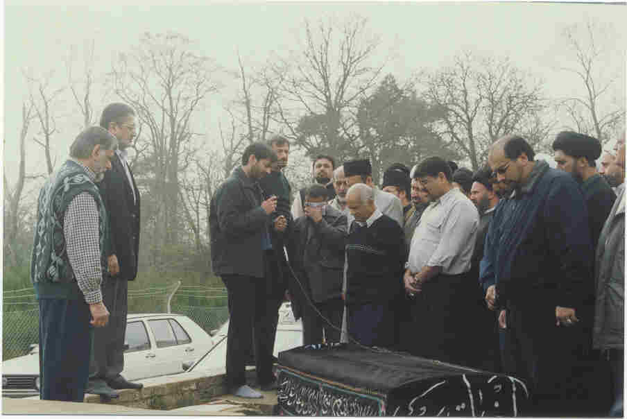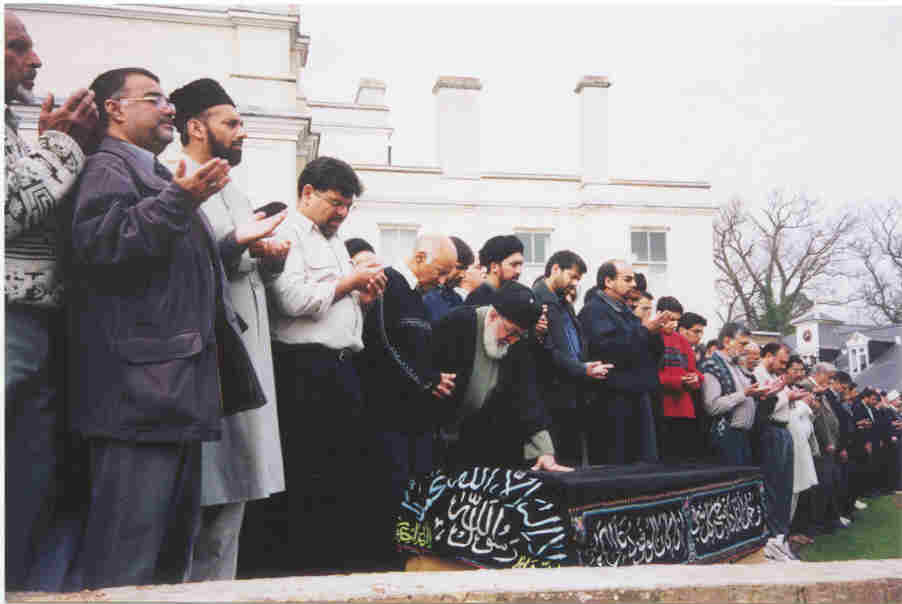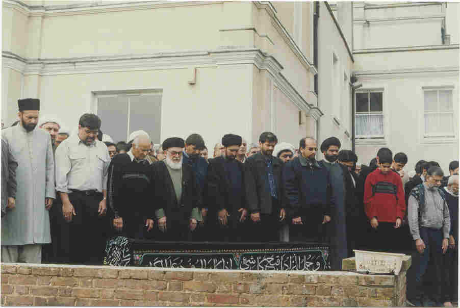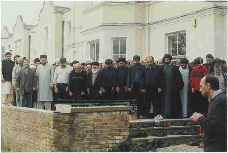 Maulana Kalbe Abbas leading the second Namaze Janaza at the Carpenders Park Cemetry before the late Mulla was laid to rest in his final abode.