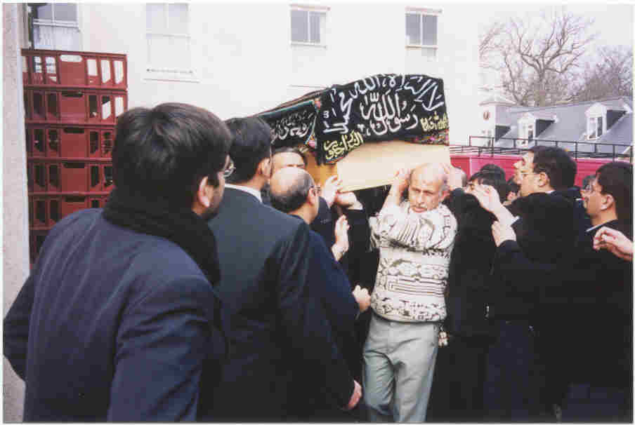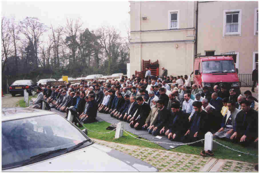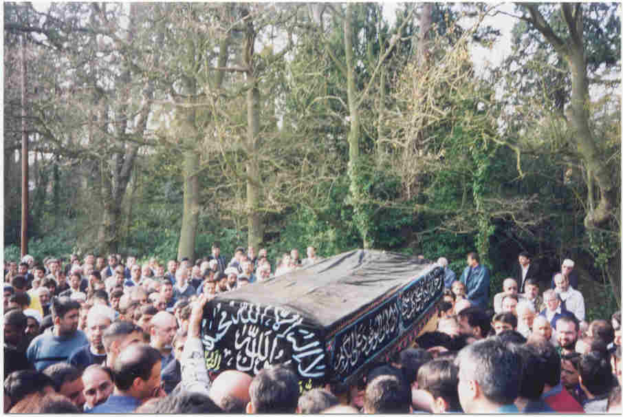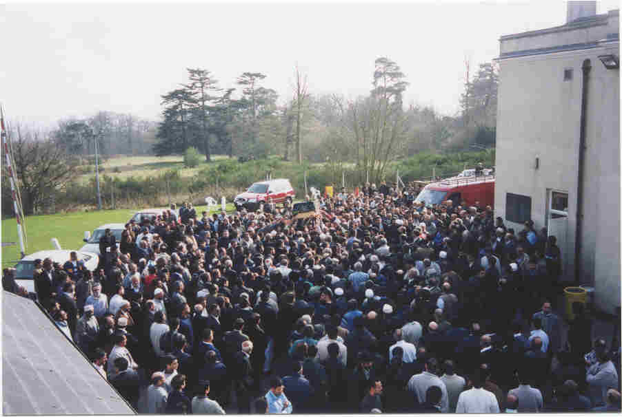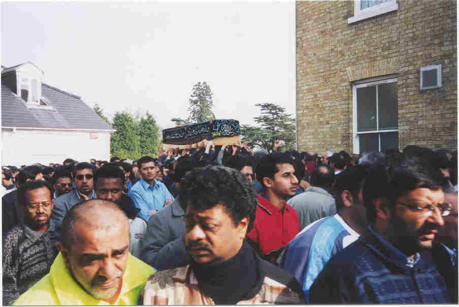Following the Janaza somberly are thousands of people in the new Carpenders Park Cemetry